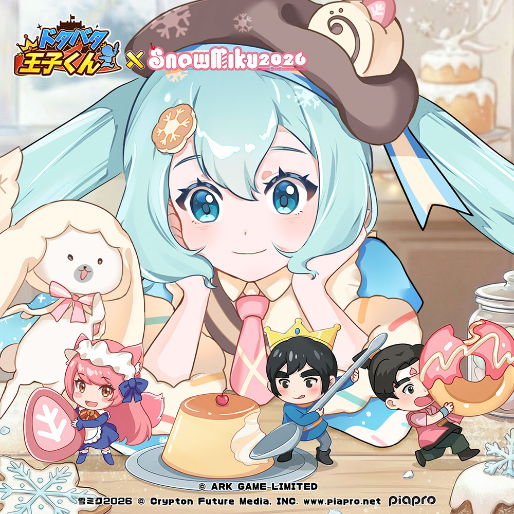 大人気アプリゲーム『ドタバタ王子くん』とSNOW MIKU 2026の限定コラボ、2026年3月27日より開催予定!期間中は、特別なURキャラスキンと迫力満点の専用演出エフェクトを獲得可能!さらに、ログインボーナス&豪華報酬を手に入れる!今すぐログインして、SNOW MIKUと肩を並べる世界へ!