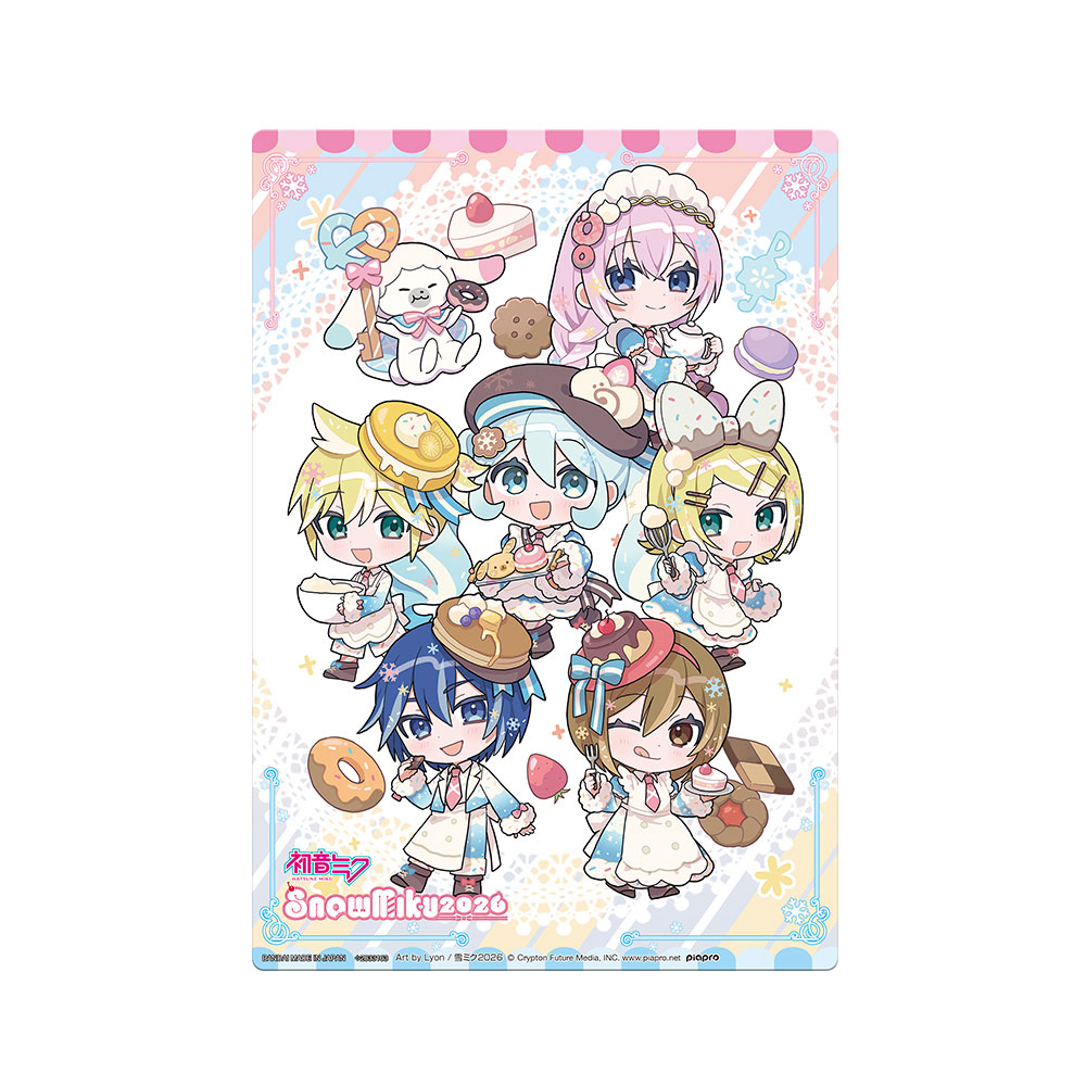 SNOW MIKU 2026 ビジュアルを使用したクリアビジュアルポスターが登場!クリア背景がキレイなA5サイズのPP製ミニポスター。1回200円で気軽に集めていただける全12種ラインナップで、うち2種はスペシャルなキラキラホログラム仕様です!