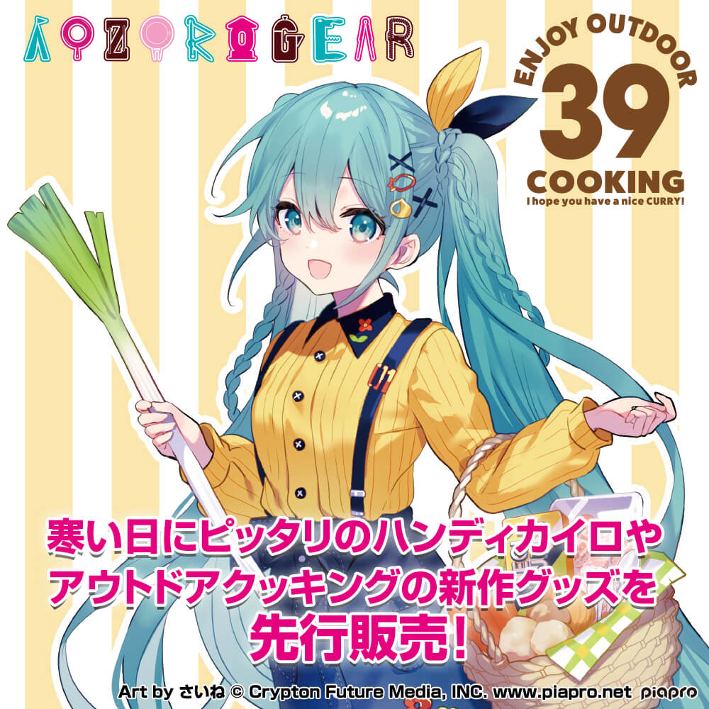 AOZORAGEARブースでは、イラストレーター「さいね」さんによる描きおろしイラストを使用した、アウトドアクッキンググッズを販売します。