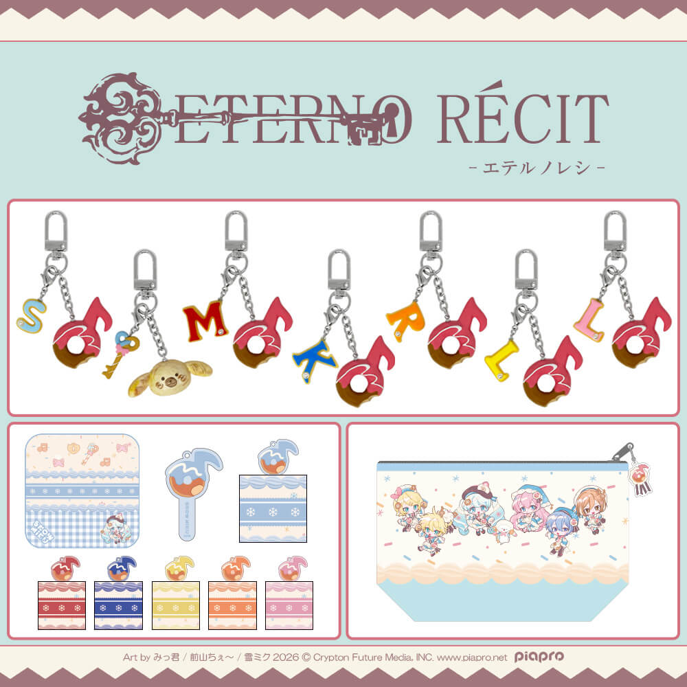 「SNOW MIKU 2026」イベントメインビジュアルをイメージしたスイーツチャーム(全7種)や、イラストを使用したポーチ(全1種)、デコレーションケーキをイメージしたデザインのハンドタオル(全6種)等、今年のコンセプトにピッタリなアイテムを多数展開!