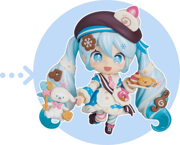 毎冬北海道で開催の『SNOW MIKU』フェスティバルの衣装を着た「雪ミク」たちの総称です。2010年に「雪ミク」が誕生し、2011年はマフラー・手袋・イヤーマフをまとった姿で登場。2012年からは毎年衣装テーマを決め、インターネット上で公募して決定しています。2014年にペットキャラクターとして「ラビット・ユキネ」が誕生。2015年からはあわせて衣装を公募しています。昔からのファンの方にも、初めましての方にもお楽しみいただける「雪ミク」たちが揃っています。