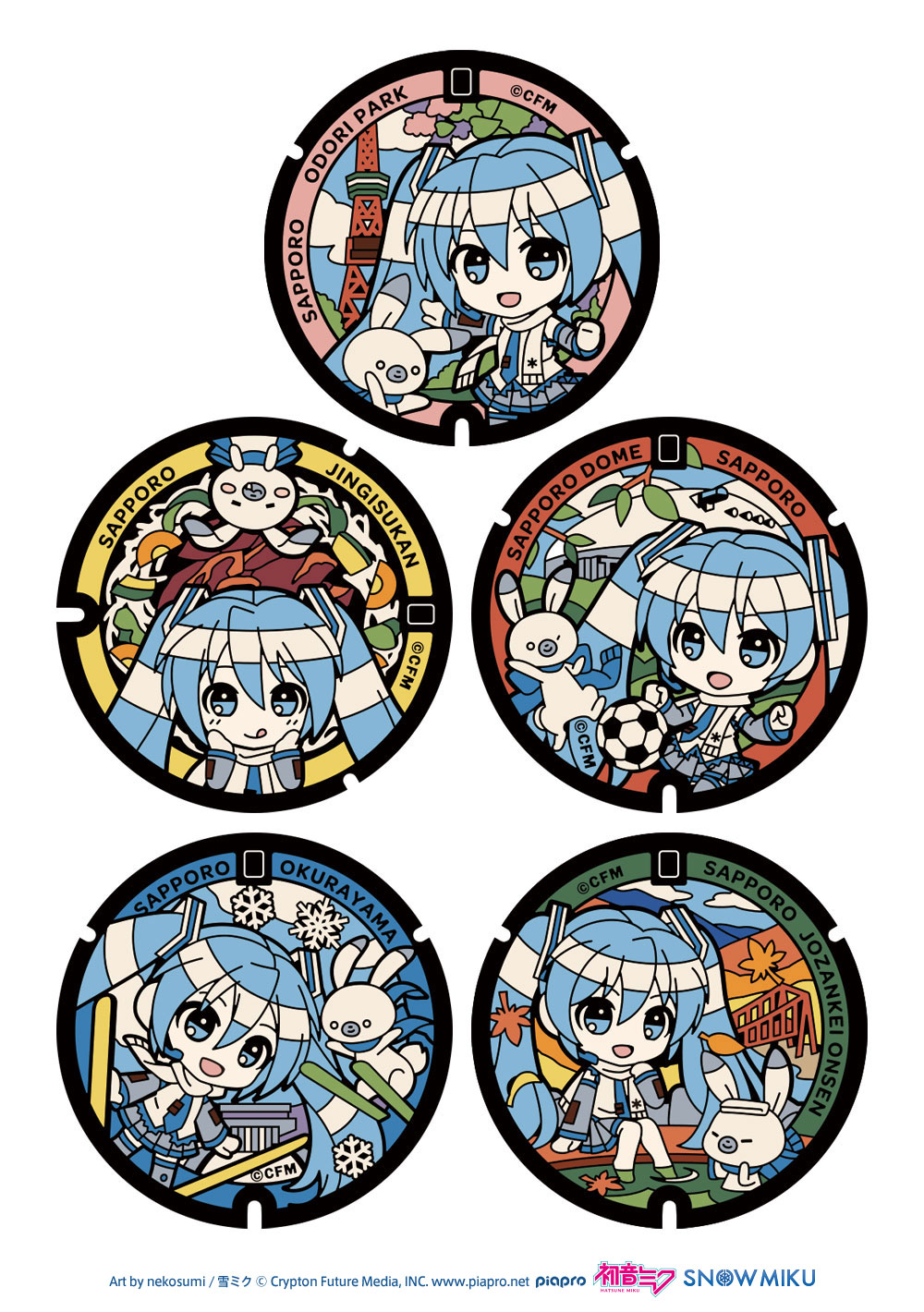 雪ミクとラビット・ユキネが札幌市下水道初のキャラクターを活用したデザインマンホール蓋に!札幌市内5ヶ所に設置されました。